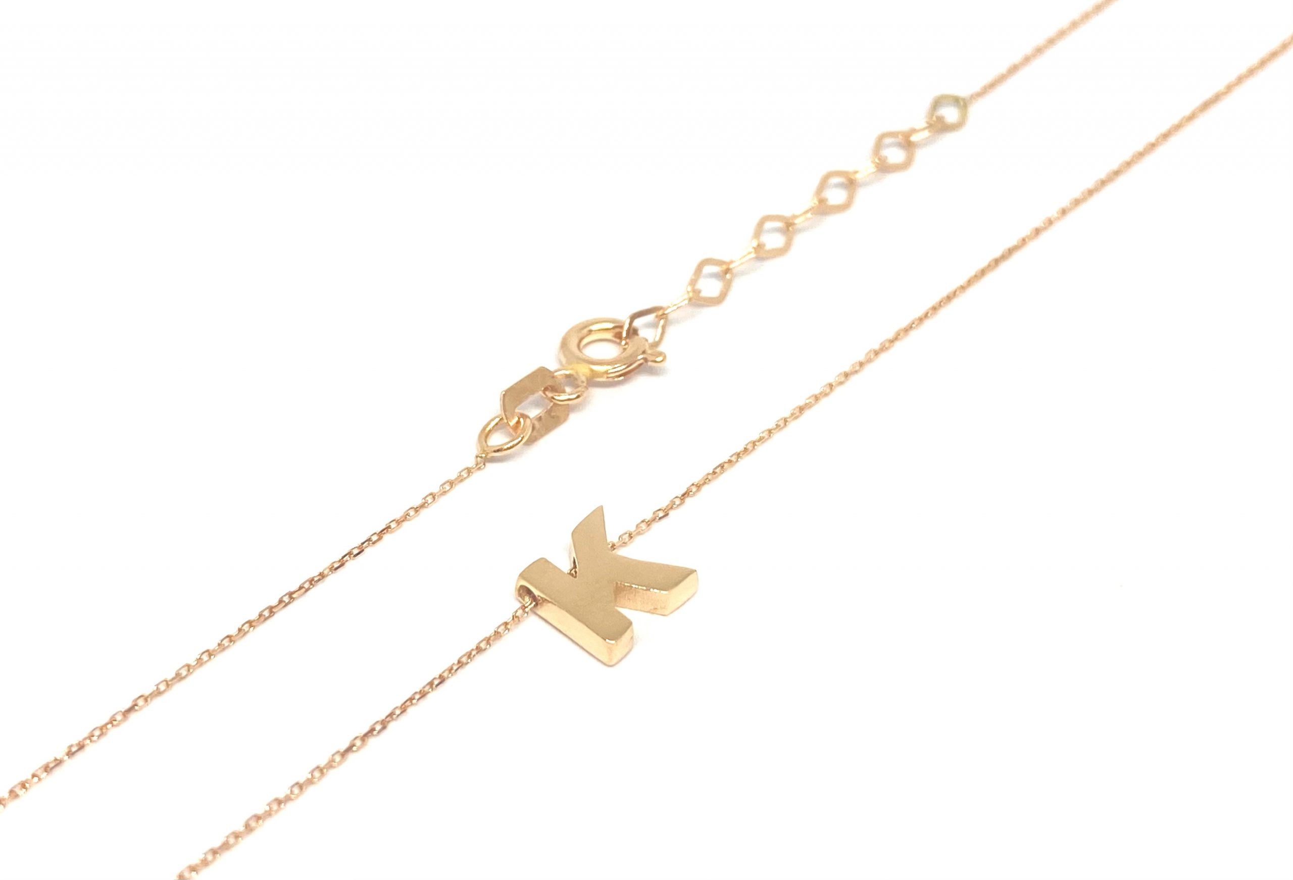 Auksinė grandinėlė kartu su pakabuku raidė “K” 42-45 cm