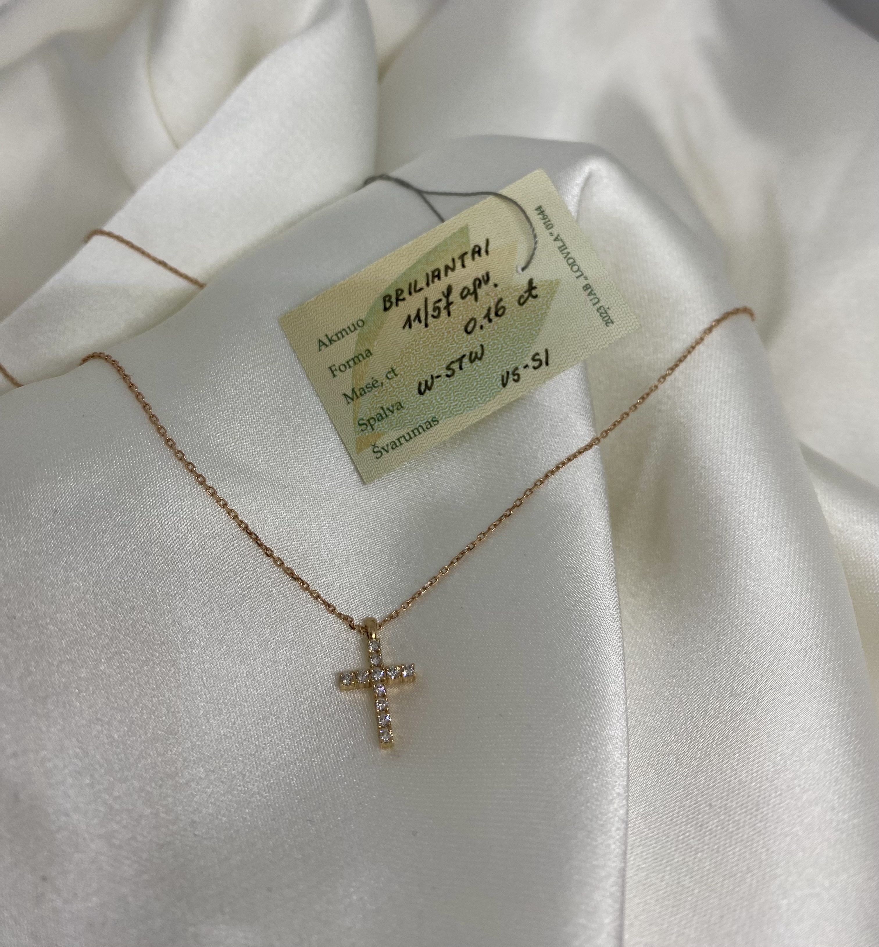 Gaminame iš raudono, balto, geltono aukso. Grandinėlės ilgį galima pasirinkti 38, 40, 42, 45, 50 cm. Norime pabrėžti, kad šis papuošalas gaminamas individualiai ir tik po apmokėjimo. Gaminį gausite su brangakmenių kokybę patvirtinančiu sertifikatu išduotu Lietuvos Prabavimo Rūmų. Grąžinimas galimas tik broko atveju. Pakabukas su 0,16 ct briliantu (VS SI). Gamybos terminas – 15 darbo…