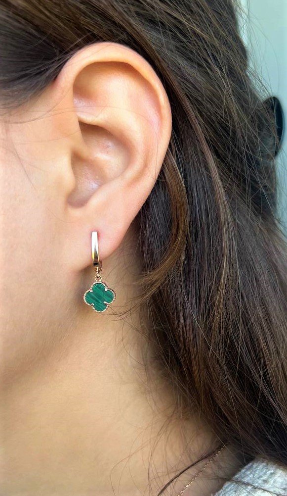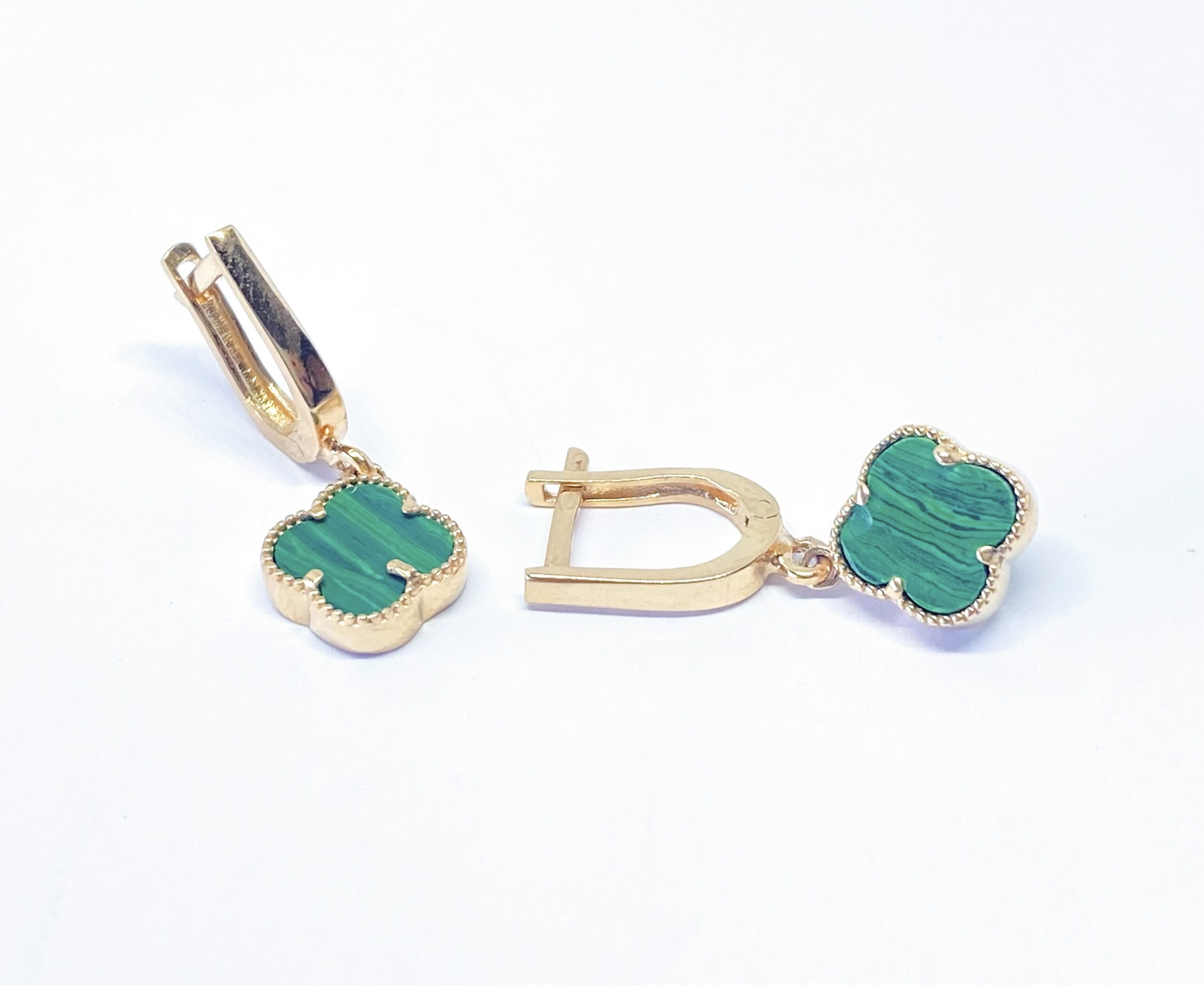 / Auksiniai auskarai su malachitu
