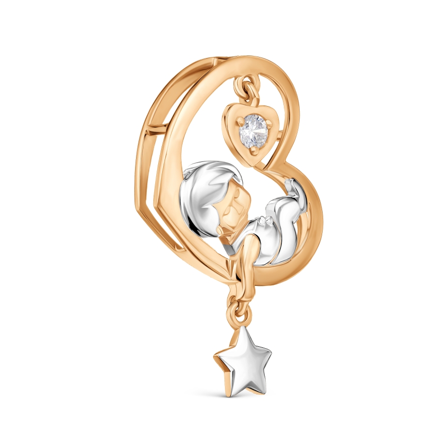 Auksinis pakabukas “Vaikas širdelėje” su cirkoniu