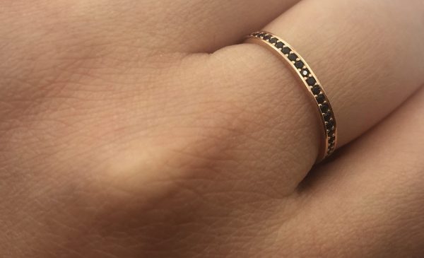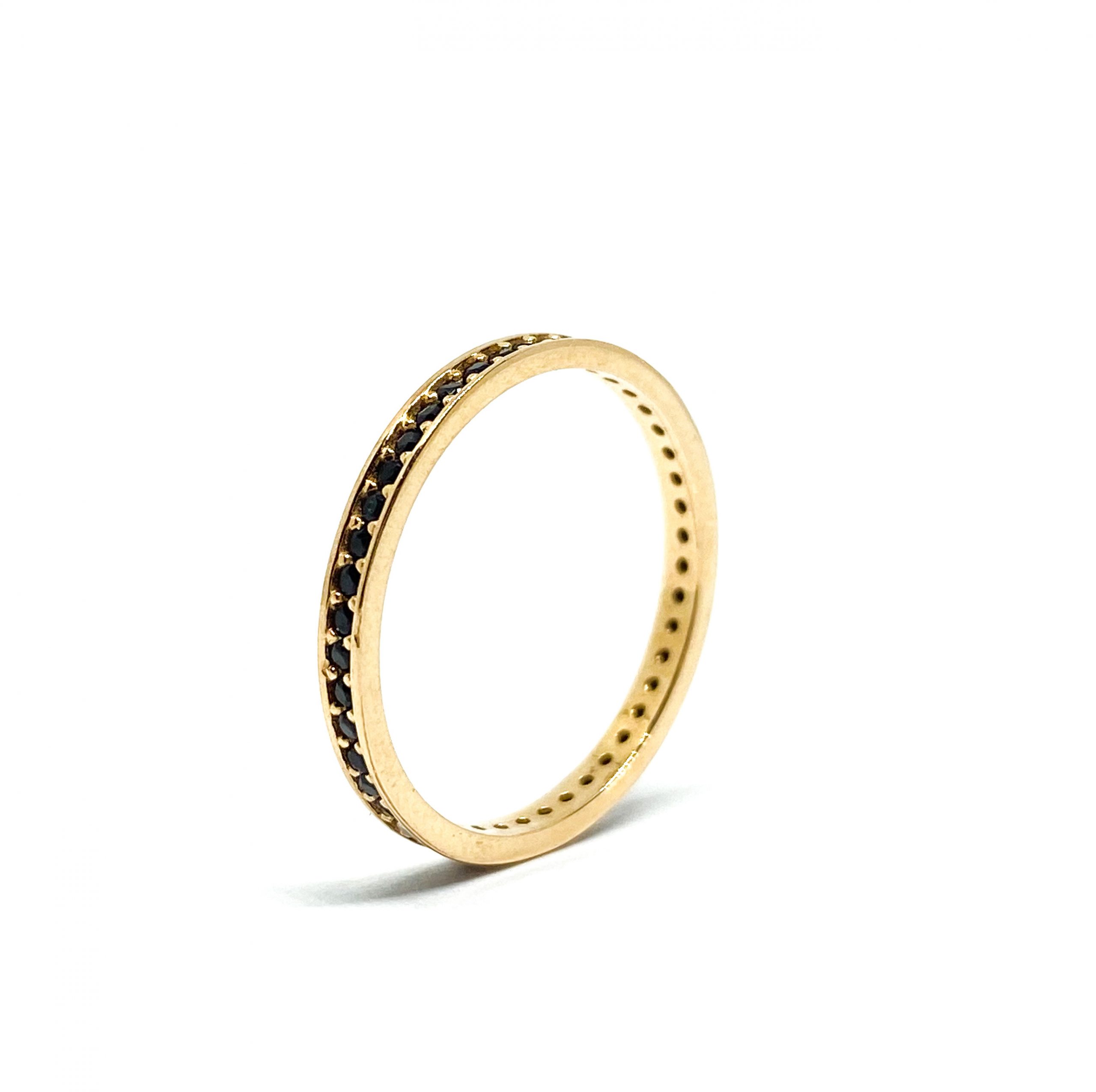 / Auksinis žiedas su juodais cirkoniais 17, 5 dydis