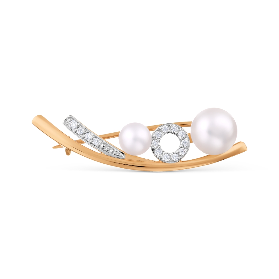 Karatov auksinė sagė su perlu ir cirkoniais