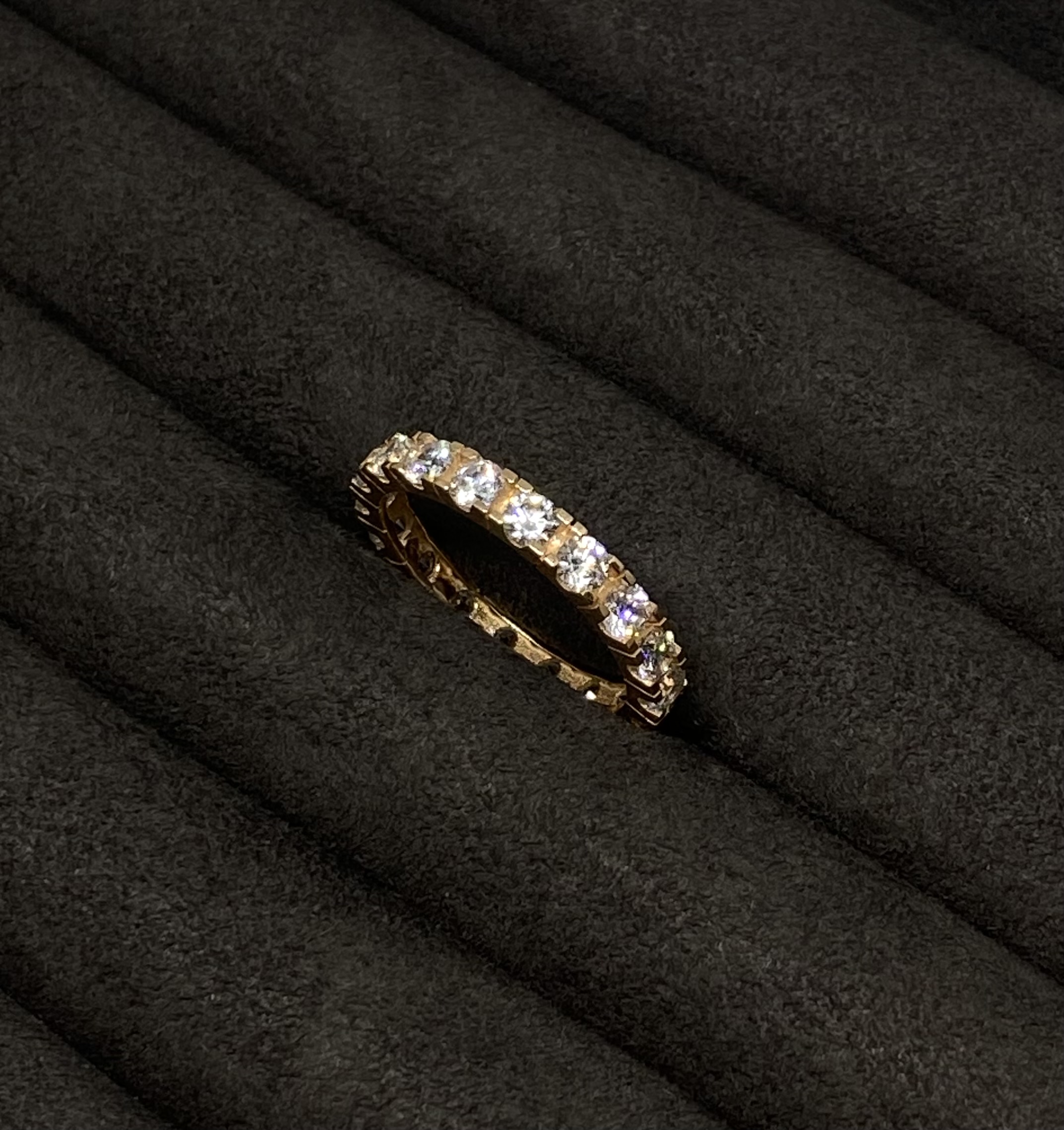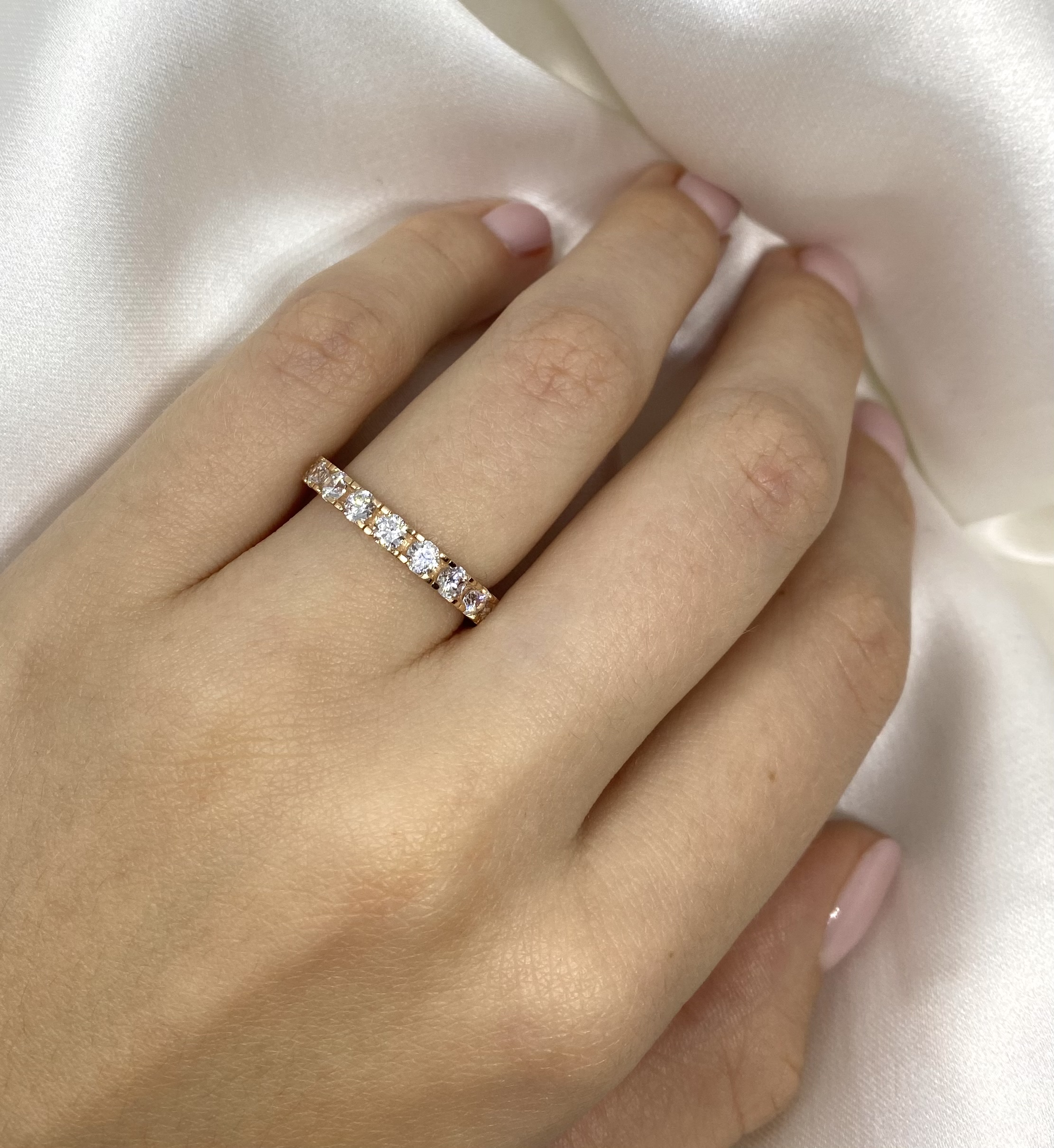 Raudono aukso žiedas su cirkoniais 17,5 dydžio